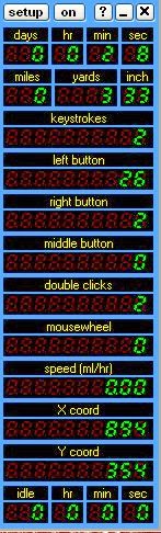 இதில் ஒடும் நேரம்,கர்சர் மானிட்டரில் பயணிக்கும் தூரம்,மவுஸில் நாம் ரைட் கிளிக் எவ்வளவு செய்தோம்,லெப்ட் கிளிக் எந்தனை முறை செய்தோம். டபுள் கிளிக் எவ்வளவு முறை கிளிக் செய்தோம் என எளிதில அறிந்துகாள்ளலாம். மேலும் கீபோர்டில் கீகளை எவ்வளவு முறை அழுத்தினோம் என்கின்ற விவரமும் அறிந்துகொள்ளலாம்.முக்கியமாக நீங்கள் மவுஸ் மற்றும் கீபோர்ட் உபயேகிக்காமல் எவ்வளவு நேரம் சும்மா இருந்தீர்கள் என்பதனையும் எளிதில் அறிநதுகொள்ளலாம். பயன்படுத்திப்பாருங்கள்.கருத்துக்களை கூறுங்கள